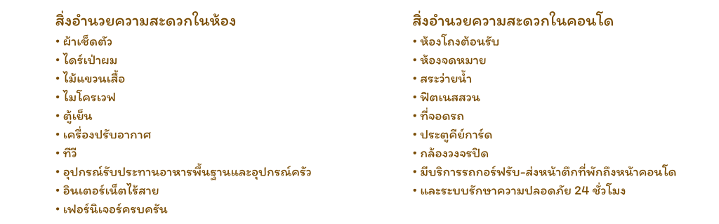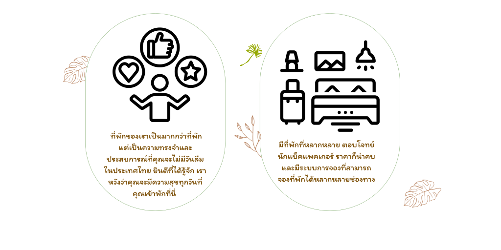 เลือกที่พักที่เหมาะกับคุณ และ ครอบครัว เพื่อการเข้าพักที่มีความสุข และสมบูรณ์แบบ เราหวังที่จะสร้างความสุข และความสะดวกสบายตลอดการเข้าพัก จากหนึ่งในที่พักของเรา ที่มีมากมายหลายตัวเลือก